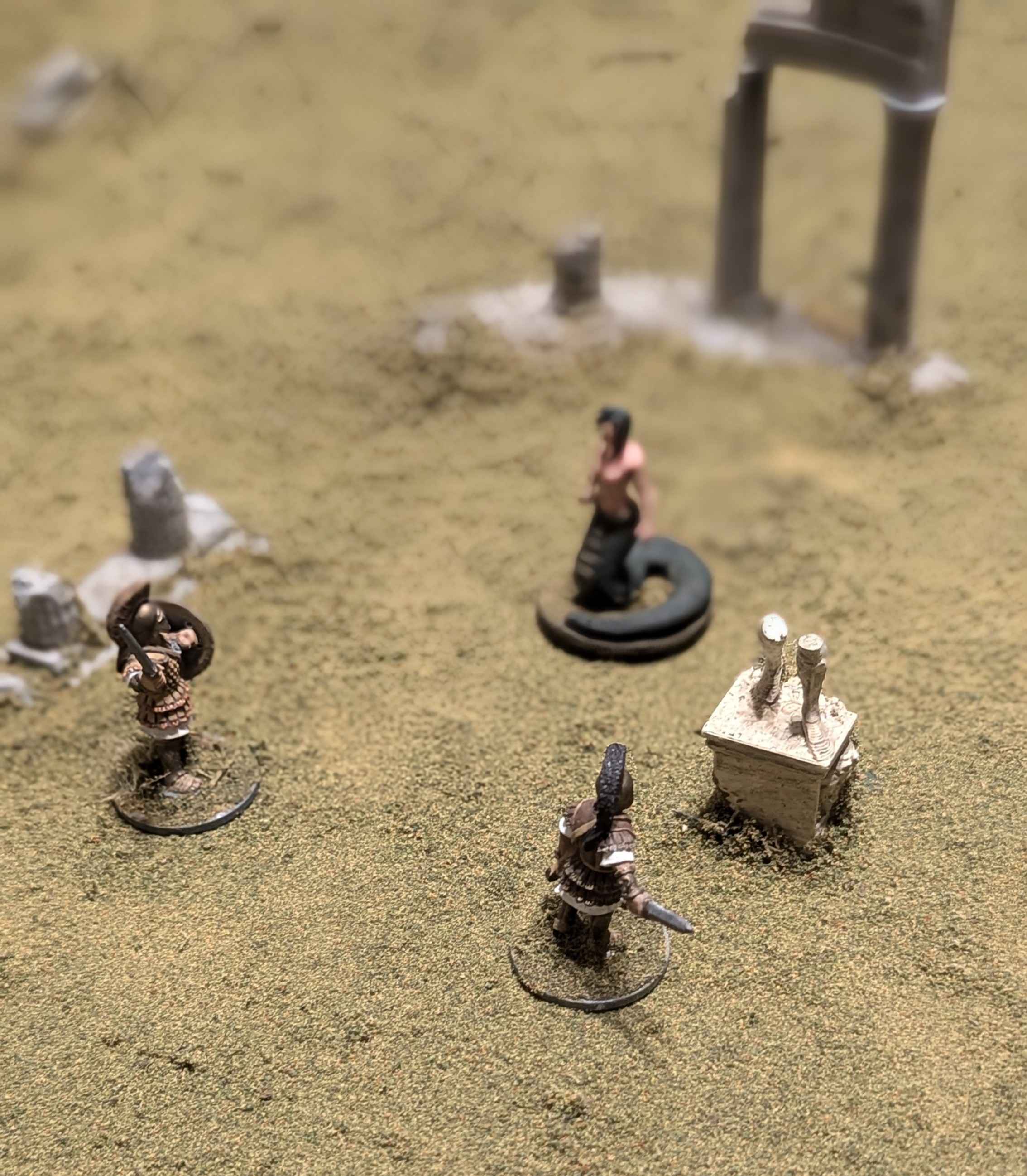 DEMIGOD is a 28mm miniature skirmish game that lets you lead your own band of heroes through a series of trials and tribulations on their way to become full-fledged gods. Choose from one of three patrons as you build a hero worthy of legend. Hire an adventuring party full of hoplites, satyrs, nereids and other creatures from Greek myth and antiquity, then lead them across Greece on quests for glory, gold and survival. Be warned, though, that ancient Greece is a dangerous place, full of monsters, rival heroes and the capricious whims of the gods themselves. Are you equal to the challenge?